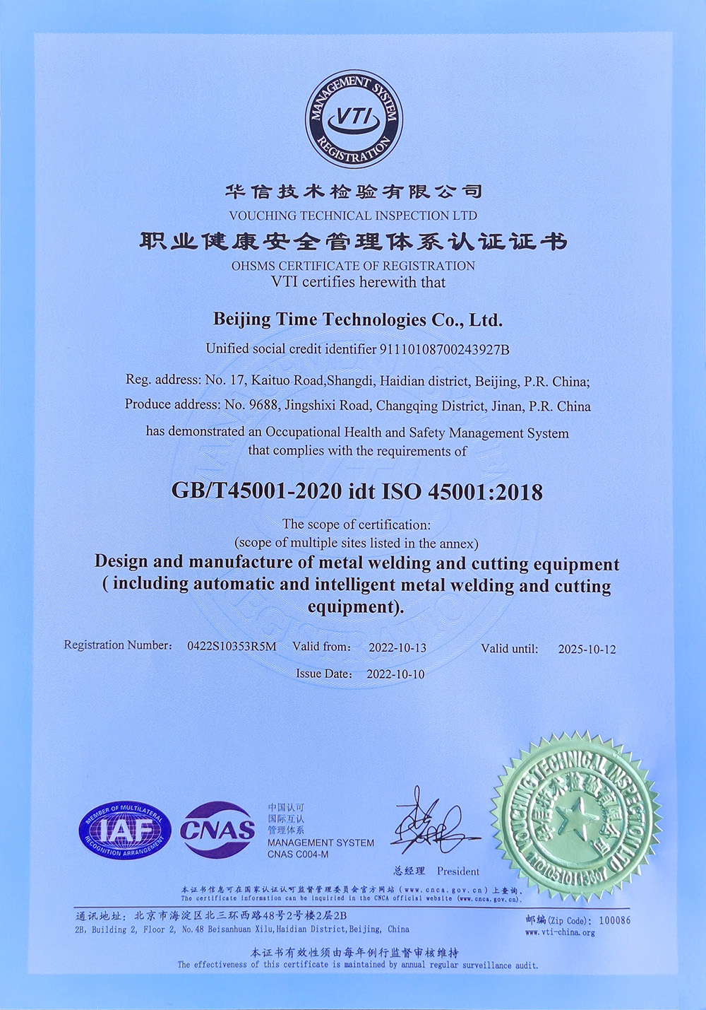 Occupational Health and Safety Management System Certificate