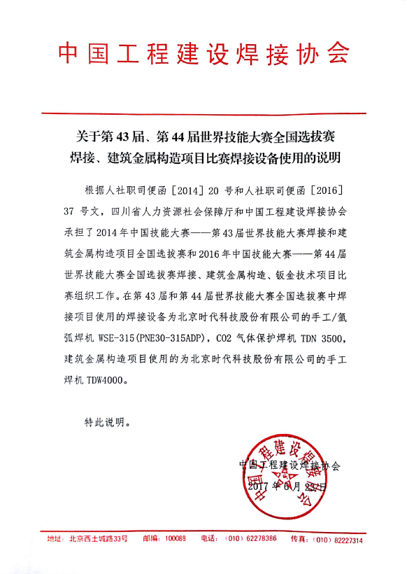 關(guān)于第43屆、第44屆世界技能大賽全國(guó)選拔賽焊接設(shè)備的使用情況