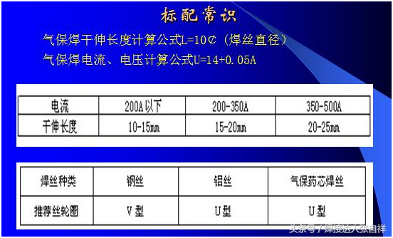 除了以上干伸長(zhǎng)度對(duì)焊接的要求以外,對(duì)于送絲輪的使用可以參照上圖,焊接碳鋼、不銹鋼等實(shí)心焊絲采用的送絲輪為V型,焊接鋁合金或藥芯焊絲等材質(zhì)較軟的焊絲可采用U型輪,如果選擇錯(cuò)誤,可能會(huì)出現(xiàn)送絲不暢,參數(shù)匹配有誤等問題,另外,對(duì)于焊絲來講,每一種焊絲都有其焊接范圍,比如,如果采用1.2Mm焊絲,要想焊接500A的電流,就是把調(diào)節(jié)電流放到最大500A,也只能出300多安的電流就是這個(gè)道理,要想焊到500A,只需要不絲徑加到1.6或更粗的焊絲即可。這也是防止焊機(jī)超負(fù)載使用的一個(gè)方法,比如采用60%占載率的氣保500焊機(jī),如果長(zhǎng)時(shí)間焊接,那么根據(jù)公式就只能得出380A以內(nèi)可以長(zhǎng)時(shí)間焊接,為了避免焊工誤操作,可以選用1.2mm絲徑就不會(huì)出現(xiàn)超負(fù)載應(yīng)用了,具體公式算法及焊絲需用電流表如下: