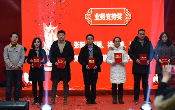產業(yè)年會“頒獎典禮及迎新年會”在12日下午如期而至。焊機制作部首秀群舞《恭喜發(fā)財》。那紅火、熱烈、吉祥的氣氛立即嗨遍全場。時代各部門紛紛派出了自己的文藝明星登臺獻技。他們將各自的才藝及特長與公司文化相融合為時代同仁呈現(xiàn)了一場熱鬧、歡快的演出。隨著一浪高過一浪的微信抽獎活動,聯(lián)歡會現(xiàn)場達到沸點。一年一度的頒獎活動穿插在聯(lián)歡活動中逐一展開。一位位時代精英從領導手中接過令人艷羨的榮譽,這是時代對辛勤勞動者的肯定和贊譽。聯(lián)歡會最后一曲合唱《明天會更好》表達了全體時代人對2019年的憧憬和渴望。時代科技2018年年終總結會暨2019年工作計劃會在響徹四方的嘹亮歌聲中落下帷幕。