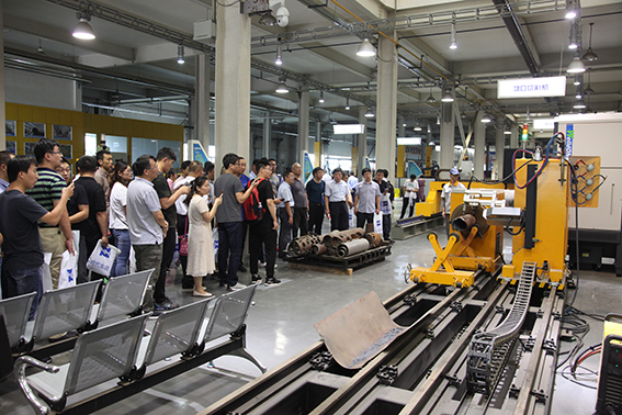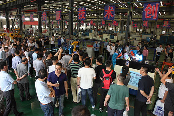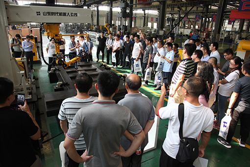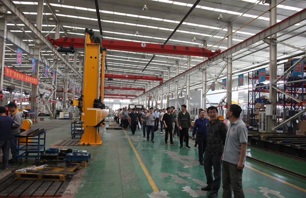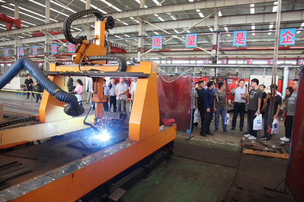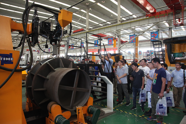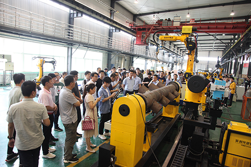 會議第一天的下午,全體代表乘車來到山東時代新紀(jì)元機(jī)器人有限公司及北京時代濟(jì)南焊接工業(yè)園參觀。時代機(jī)器人公司同仁為各位代表展示了機(jī)器人焊接技術(shù)在典型結(jié)構(gòu)件焊接中的應(yīng)用實(shí)例。時代展示的產(chǎn)品包括:相貫線管道焊接機(jī)器人、200公斤雙軸變位機(jī)配8軸聯(lián)動相貫線焊接機(jī)器人、車廂板焊接機(jī)器人、鋁合金焊接機(jī)器人等。產(chǎn)品展示中還安排了人工焊接與機(jī)器人焊接的競賽吸引眾多代表圍觀,最終機(jī)器人方以工作速度快,焊縫成形美觀等優(yōu)勢勝出。在時代焊接工業(yè)園,各位代表參觀了時代自動焊設(shè)備生產(chǎn)線及焊機(jī)裝配生產(chǎn)線,同時還觀看了時代自動焊割設(shè)備表演。通過現(xiàn)場參觀和溝通。專家們對時代產(chǎn)品有了更加全面的了解和認(rèn)識。同時,他們期待著與時代公司在特種設(shè)備焊接技術(shù)方面進(jìn)行更深入和更廣泛的交流及合作。