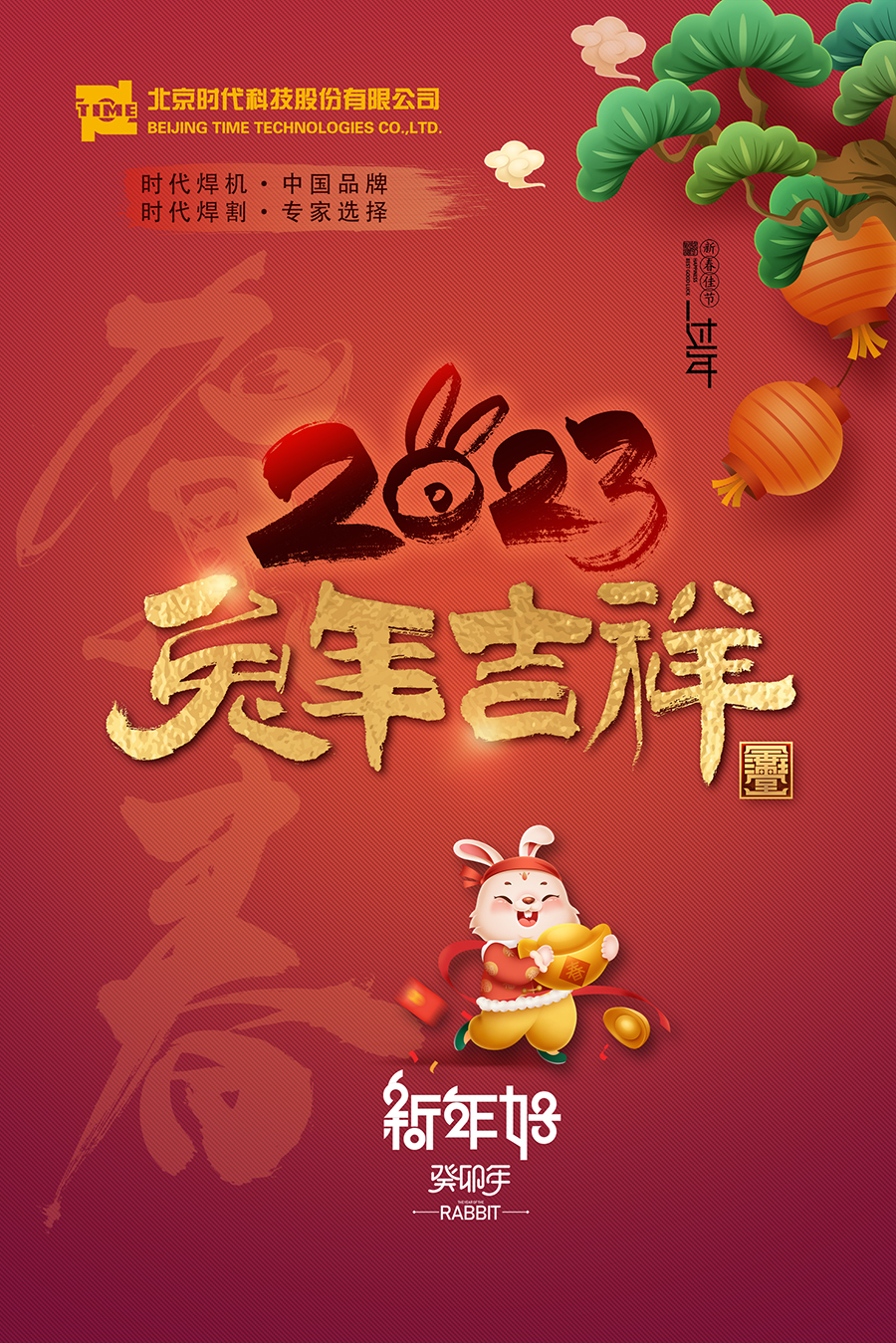 在新春佳節(jié)到來之際,全體時代人心懷感恩向所有時代焊機的新、老朋友致以最誠摯的新年問候!祝愿大家新春快樂!萬事如意!身體健康!闔家歡樂!同時祝愿所有朋友在癸卯年(2023年)順風順水、步步登高、豪氣勃發(fā)、大展宏圖!