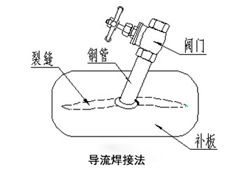 適用于泄漏面積較大或流量較大或壓力較大時(shí)的焊接,根據(jù)泄漏處的的形狀制作一塊帶截流裝置的補(bǔ)板。泄漏較為嚴(yán)重時(shí),截流裝置用一段導(dǎo)流的管子,在上面裝一個(gè)閥門,泄漏較小時(shí),補(bǔ)板上預(yù)留一個(gè)螺絲帽即可。補(bǔ)板的面積一定要大于泄漏處,截流裝置在補(bǔ)板上的位置一定要正對著泄漏處,補(bǔ)板與泄漏處接觸的一面涂上一圈密封膠,讓泄漏的介質(zhì)從導(dǎo)流管流出,以減少補(bǔ)板周圍的泄漏。補(bǔ)板焊好后,關(guān)閉閥門或擰緊螺栓即可。