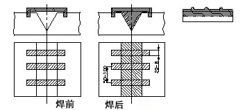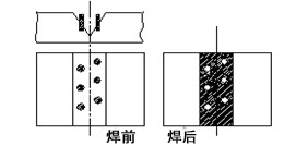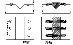 此種焊接方法主要用于工作應(yīng)力較大,工件相對(duì)較厚的焊縫,如大型機(jī)器的底座等工件。鉚釘可用碳鋼承擔(dān),焊鉚釘時(shí)可用J507焊條焊接,主焊縫仍舊用鎳基182焊條。焊接時(shí)先將坡口內(nèi)焊滿,最后焊鉚釘,使鉚釘和坡口內(nèi)焊縫形成一個(gè)整體焊縫。