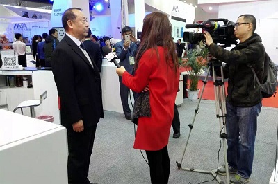 時代劉總正在接受央視電視臺采訪,濟南電視臺全程跟拍時代集團展位。